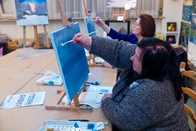La quête artistique de chacun est profondément liée à son histoire singulière. C’est Urs qui va peindre dans des quartiers où des bâtiments ont été démolis, pour honorer les gens et garder trace d’une histoire ; c’est Romain, qui fabrique comme un magicien des instruments avec des enfants et adultes de quartiers défavorisés de Paris, tout en les ouvrant aussi au monde des contes, c’est encore Guendouz qui s’est formé à la peinture et qui prépare un projet en mémoire de ses amis morts dans la cité des Sabliers à Créteil, ou Amandine, fleuriste de métier, qui s’est formée avec une autre volontaire peintre et qui crée aujourd’hui des espaces d’expression non verbale. Et puis Jacqueline qui avec ses peintures colorées sur les façades des immeubles murés, soutenait les familles à Noisy-le-Grand, pendant ce temps de grande insécurité juste avant la démolition de leur cité… Elle anime à présent des rencontres artistiques avec des membres du Mouvement à Commana, où chacun va plus loin dans la découverte de ses talents. Il y a aussi Philippe qui propose ses ateliers fils de fer, pour permettre à chacun d’exprimer des étincelles importantes de sa vie, Valérie avec ses ateliers d’écriture où chacun accueille le texte de l’autre avec bienveillance dans ce qu’il a d’unique et personnel, Bernadette qui vient de transmettre ses 7 années d’ateliers créatifs à Treyvaux et à la gare d’Yverdon, à travers des peintures et des flashs poétiques, et d’autres encore comme Laurence, qui inspirée par une militante, s’est mise en formation de clown pour apporter ce rêve-là au Quart Monde et à tous ceux qui souffrent d’enfermement… Aujourd’hui avec son nez tout rouge tout rond et les cheveux bouclés tout orange, c’est sous le nom de Bulle qu’elle approche les gens, faisant danser autour d’elle ses bulles de savon et ses paroles poétiques.