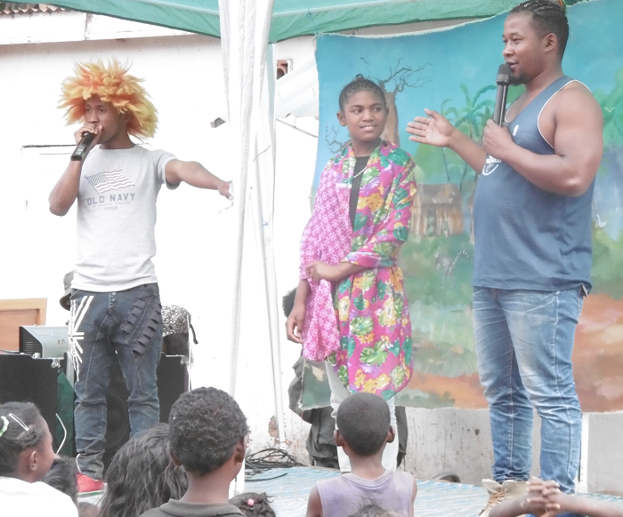 Les animateurs ont choisi l’histoire de Fanja comme fil conducteur de la journée pour raconter des histoires de lutte et de courage. Ils l’ont jouée en théâtre de marionnettes.