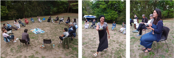 Réunis en cercle en plein air, tous les participants se sont présentés dans l’ordre de leur choix. Au total, 21 personnes ont participé, chacune devant se décrire à travers un objet important pour elle.