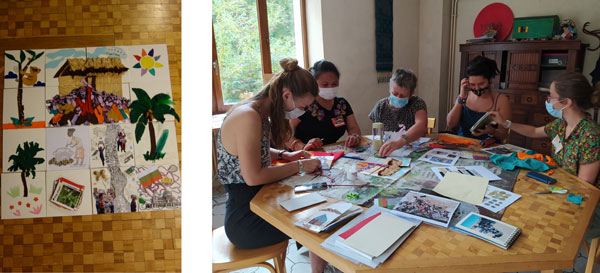 « J’ai participé à l’atelier pour les Philippines. J’ai appris des faits assez intéressants sur le pays racontés par la merveilleuse Marjorie. Tout le monde a contribué avec une petite œuvre d’art à l’ensemble de l’image. »