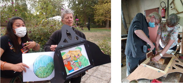 « Nous avons travaillé à la fabrication de deux kamishibaïs en bois. Nous en avons ramené un en Bulgarie afin de l’utiliser avec les enfants dans nos activités hebdomadaires dans les rues de Sofia. La prochaine étape consiste à préparer des histoires avec eux. »